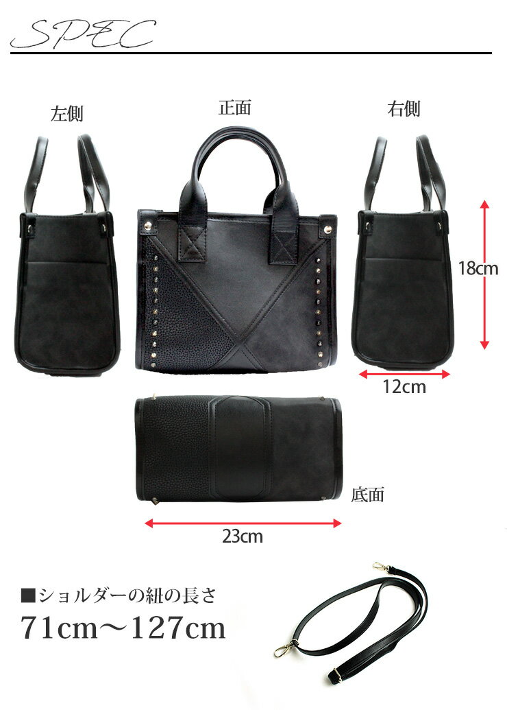 サイドに散りばめられたオリジナルの七角錐のスタッズがアクセントになりデザイン性の高い物に仕上がりました。