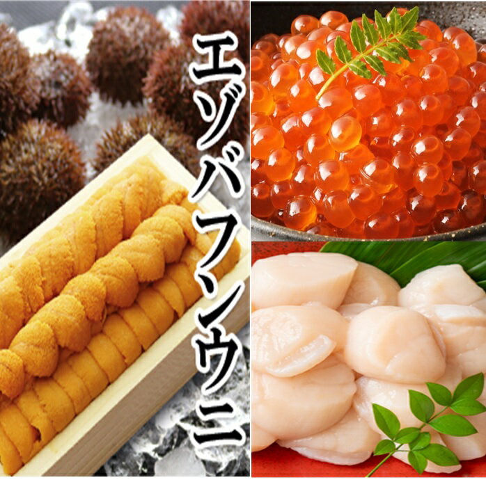 【ふるさと納税】エゾバフンウニ140g×1折、いくら醤油漬け150g×1P、お刺身ホタテ貝柱500g×1P[2022年11月中旬以降発送] E-40003