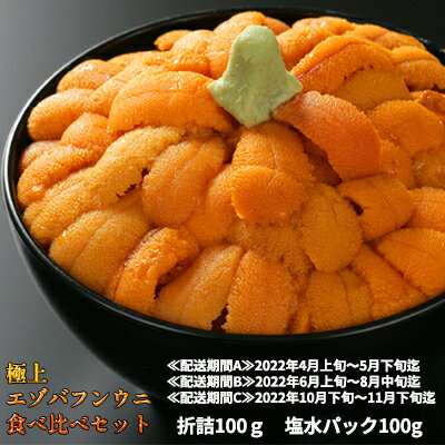 【ふるさと納税】極上エゾバフンウニ折詰100g・塩水パック100g食べ比べセット 【生うに 海鮮 バフンウニ 折うに 塩水】 お届け:A:2022年4〜5月下旬迄・B:6〜8月中旬迄・C:10月下旬〜11月下旬迄