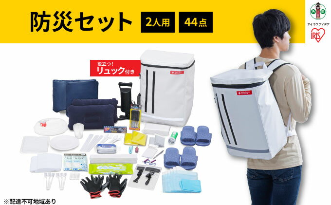 【ふるさと納税】防災セット 2人用44点 BS2-44 ホワイト 【雑貨・日用品・防災】 配送不可:離島災害時に役立つ基本の衛生用品から、あったら便利な電気用品までをセットにした防災リュックです。