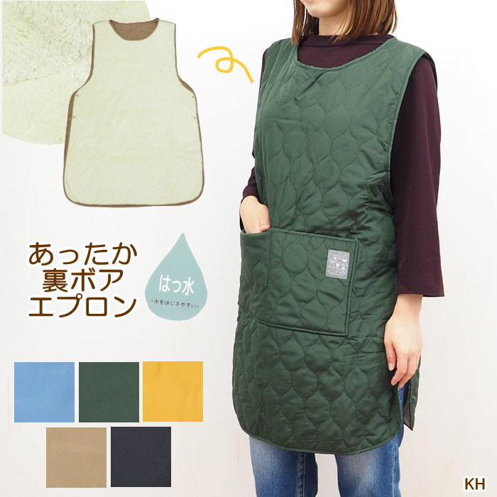 [即出荷] [SmokeBL] エプロン 暖かい おしゃれ キルティング被りエプロン 58-8021 裏起毛 あったか 保育士 裏フリース 大きいサイズ 冬 防寒 レディース フリースエプロン タブリエ ベスト型 ワンピース 袖なし 撥水加工 【ネコポス便不可】【送料無料】【あす楽対応】