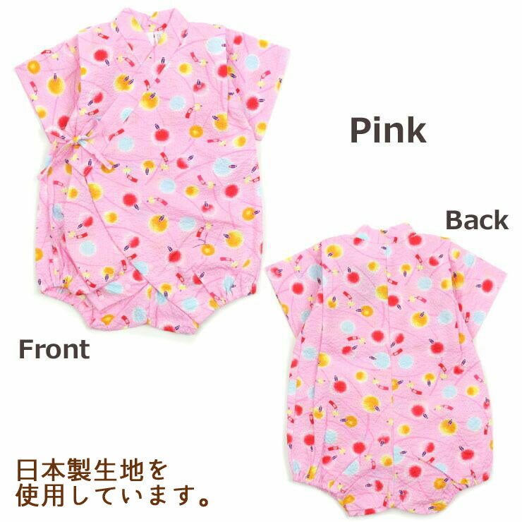子供服 じんべい 甚平ロンパース 風鈴 蛍【ベビー 女の子】【 70cm 80cm 】アイボリー ピンク【 821000-4907 】【お祭り 子供 和柄】【メール便対象】