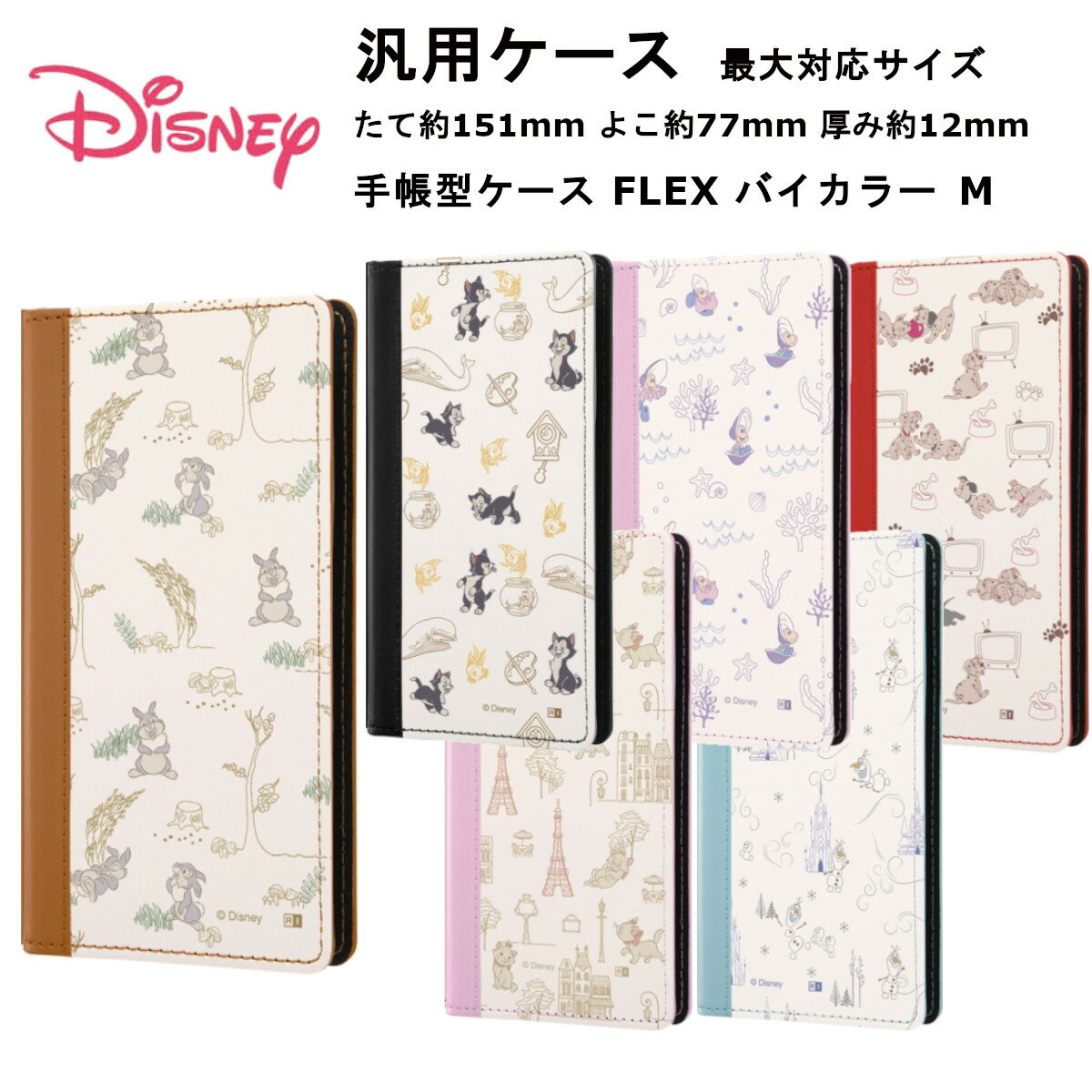 スマートフォン 汎用 タイプ Mサイズ 国内メーカー品 ケース カバー スマホケース ディズニー キャラクター 手帳型 FLEX バイカラー M バンビ とんすけ ピノキオ フィガロ ふしぎの国のアリス オイスター 101匹わんちゃん おしゃれキャットマリー アナと雪の女王 オラフ