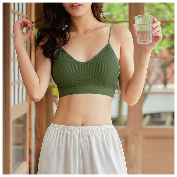 ノンワイヤーでスポーティに着られるブラトップが新登場!・リブ編み&ストレッチ性に優れた素材使いで、しっかりとお胸をホールド!・厚みのあるパット内蔵で、気になるボリュームもアップしてくれる♪