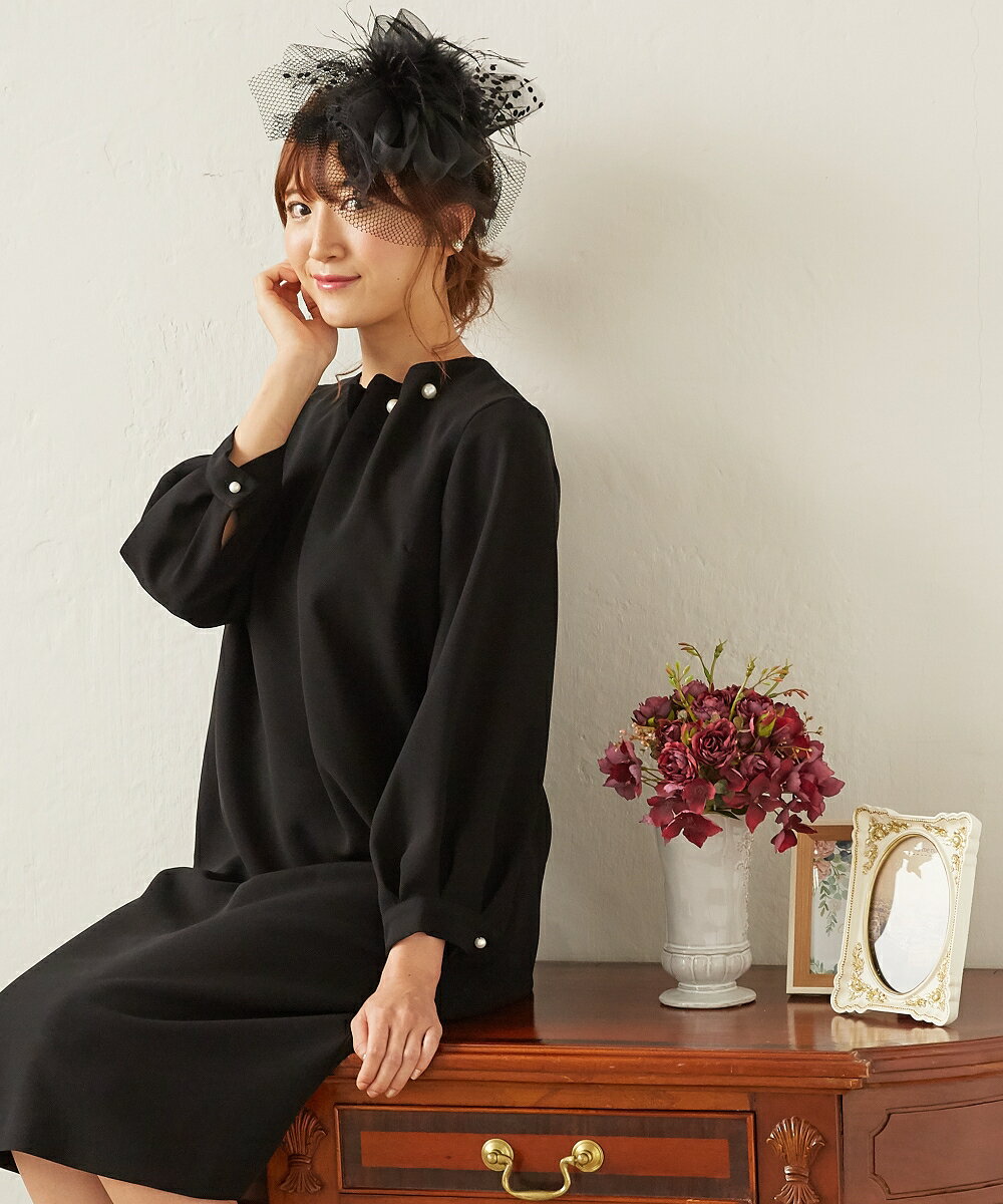 【SALE】【Competito】パール付きリトルブラックフォーマルドレス competito コンプティート コンプチ 小さいサイズ XS S SS XSサイズ Sサイズ 小柄 服 レディース 小さい服 低身長 小柄女性 小さいサイズ専門店 ワンピース 喪服 結婚式