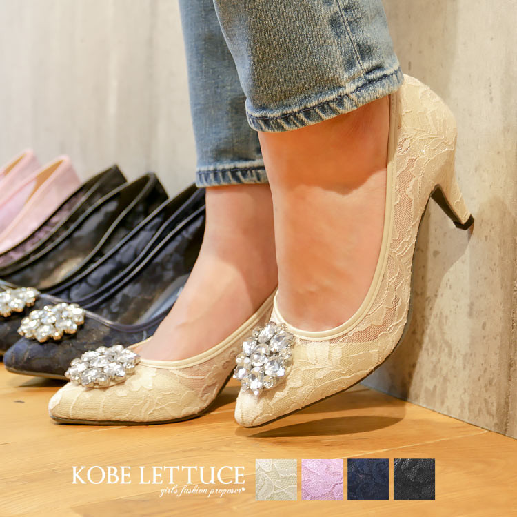 特別セール★レースビジューパンプス レディース シューズ 春 春夏 オケージョン 美脚 クリアビジュー ペールトーン 黒 パンプス 結婚式 ヒール ブラック フォーマル 7センチヒール 総レース ビジュー ポインテッドトゥ フェミニン 上品 [I1767]