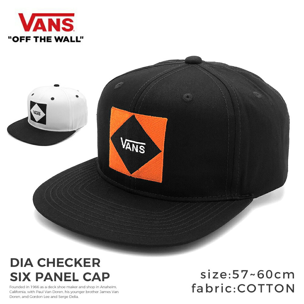 VANS ストレートキャップ cap バンズ ベースボールキャップ ヴァンズ メンズ レディース ブランド 帽子 送料無料 スナップバック ブラック ホワイト オレンジ ロゴ スケート スケーター DIA CHECKER SIX PANEL CAP