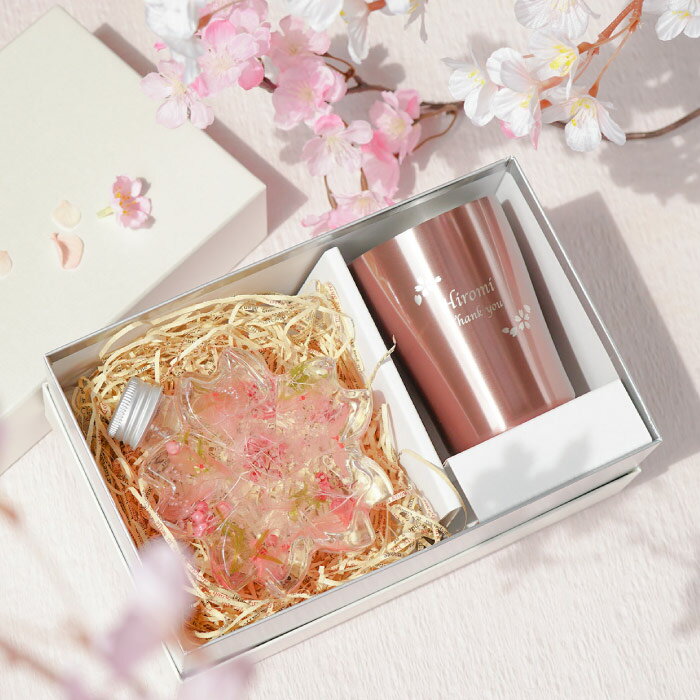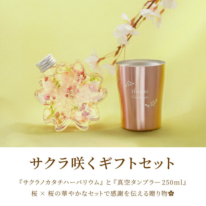 誕生日プレゼント 母親 50代 60代 おしゃれ 名入れ ギフト 花 【 サクラノカタチ ハーバリウム & 真空 タンブラー 250ml 】 ステンレス ギフトセット 女性 枯れない花 名前入り 還暦祝い 退職祝い 女性 義母 祖母 古希 喜寿 祝い 桜 父の日 実用的 敬老の日