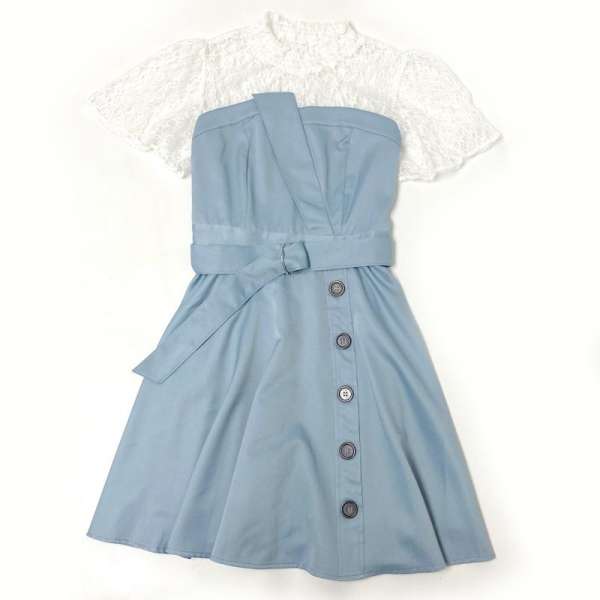 ◇ ●新品● ◎ CECIL McBEE セシルマクビー タグ付き 総柄 半袖 ミニ ワンピース サイズM ライトブルー レディース 【中古】