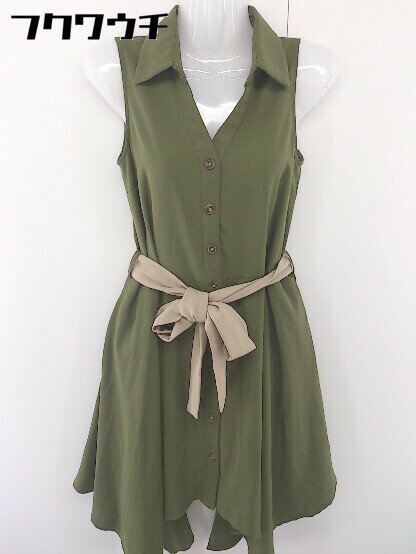【中古】未使用品 セシルマクビー CECIL McBEE ワンピース Aライン フレア ミニ プルオーバー レース ベルト付き 無地 半袖 M 茶 キャメル ブラウン レディース 【ベクトル 古着】 220707