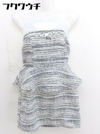 【中古】セシルマクビー CECIL McBEE フレアワンピース ひざ丈 ノースリーブ Uネック ストライプ柄 M モノトーン 白 黒 ホワイト ブラック /FF25 レディース 【ベクトル 古着】 211022