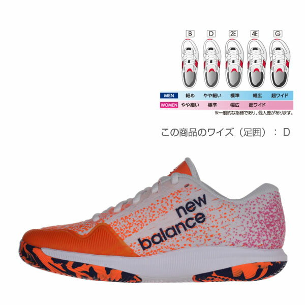 コートカバー重視の上級プレーヤーに、よりよいフィットを提供するDと2Eの2ウイズ展開のもと、フィット性・通気性・軽量性に優れたHYPOKNITアッパー、卓越した反発性で俊敏な動きを支えるFuelCellミッドソールが、高速テニスを快適にサポートします。