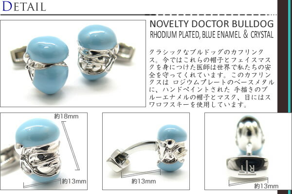 NOVELTY DOCTOR BULLDOG RHODIUM PLATED, BLUE ENAMEL & CRYSTAL CUFFLINKS クラシックなブルドッグのカフリンクス。